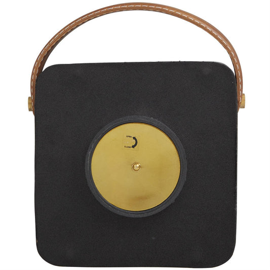 Minimalist Desk Clock with Leather Strap Handle - 8.5"