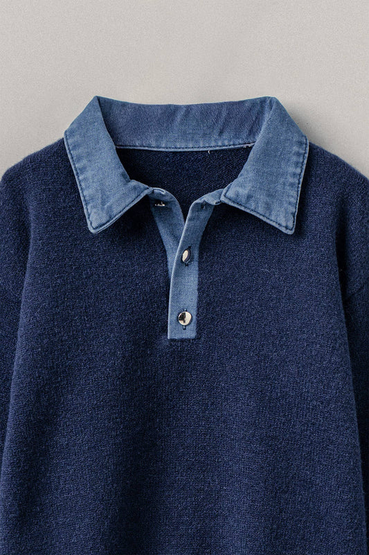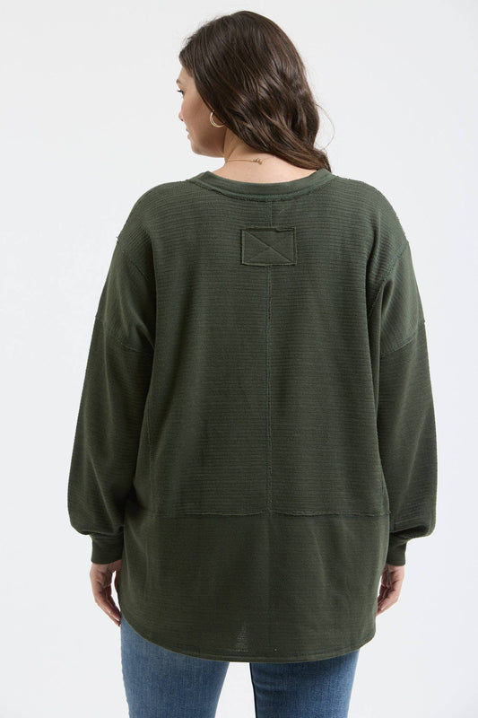 Round Neck Drop Shoulder Raw Edge Marled Knit Top