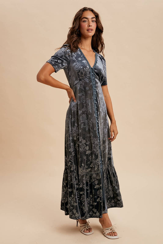 Cotton Button Front Smocked Sleeveless Maxi Dress