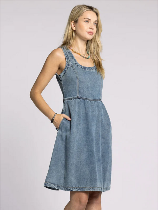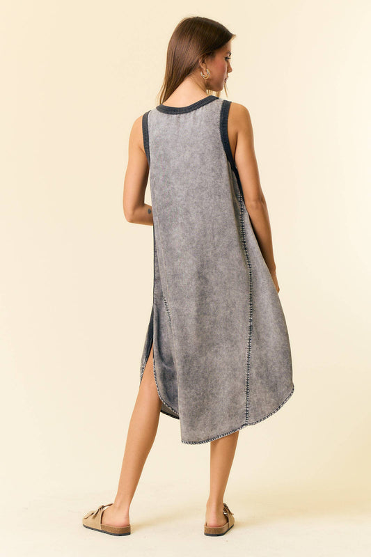 Round Neck Sleeveless Midi Dress w/ Round Hem