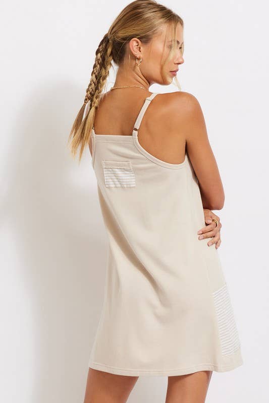 Zip-Front Cap Sleeve Mini Dress W/ Front Pockets