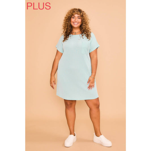 Coral Ribbed Short Sleeve Mini Shirt Dress