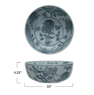 Stoneware Bowl w/ Birds & Botanicals
