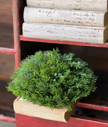 A lush bed of dense emerald greenery is peppered with small berries and branching accents to create a season-spanning addition to any line.