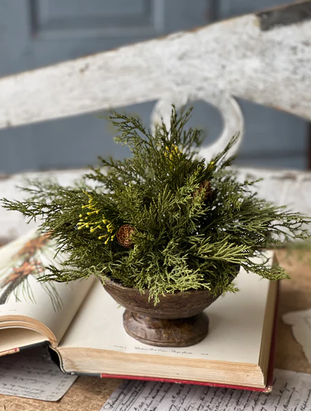 Timeless mixed cedar greenery featuring sporadic sprays that terminate in lighter tips. Sprinkled with petite pine cones.