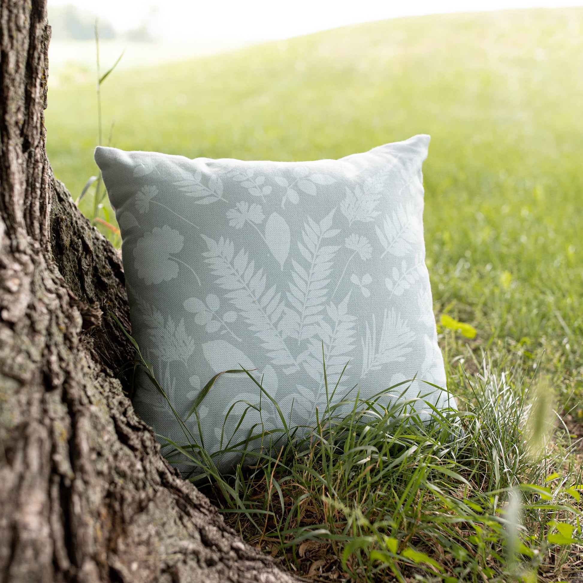 Inspired by the classic sun printing technique, this outdoor throw pillow features a tonal blue botanical print. The soft blue tones are the perfect splash of color for spring and summer, complementing traditional decor styles both indoors and out. An environmentally friendly option, this pillow is made from recycled plastic bottles.