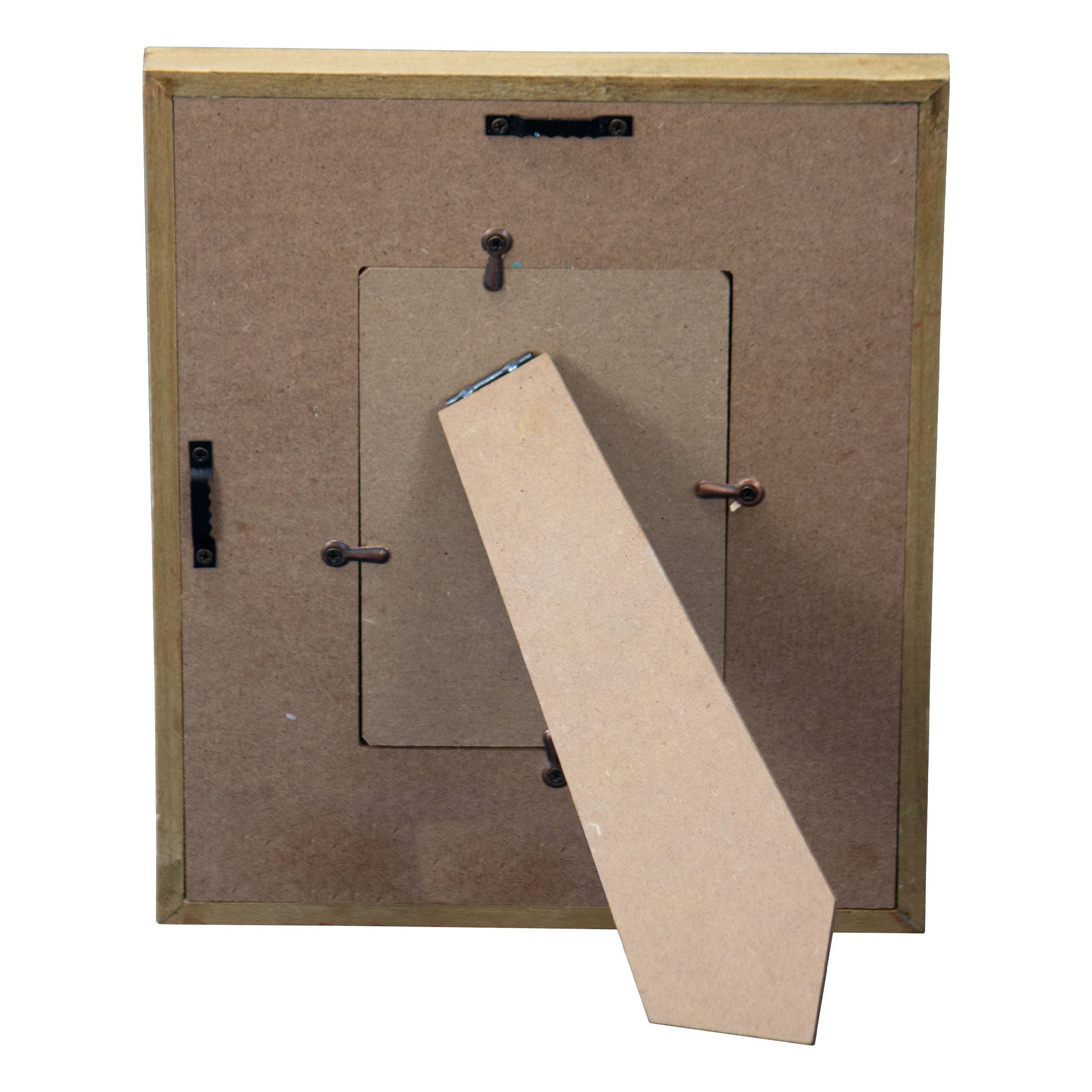 -This frame has an easel back and 2 sawtooth hangers on the back allowing for portrait or landscape orientation whether hanging or on a tabletop surface.