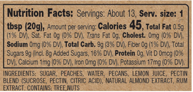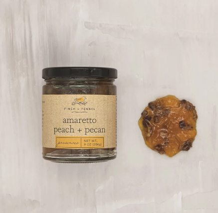 Sweet peaches, mixed with the subtle taste of almond and crunchy pecans make for an unexpected treat in Amaretto Peach + Pecan Preserves. Drizzle it on pancakes or warm for an ice cream topping.