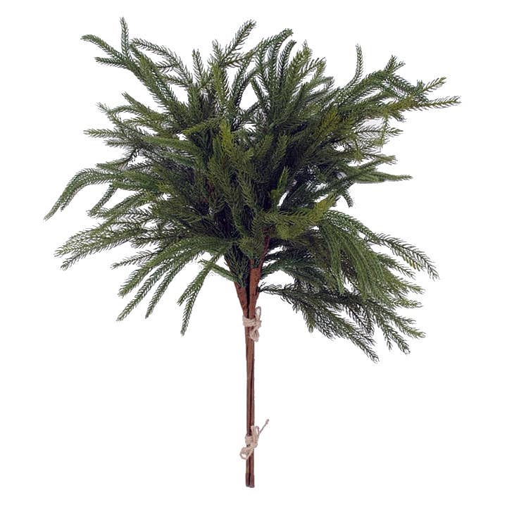 Bring the beauty of the outdoors in with this natural touch pine bundle. There are 3 wired stems bundled together with raffia. Stems can be separated for use individually.