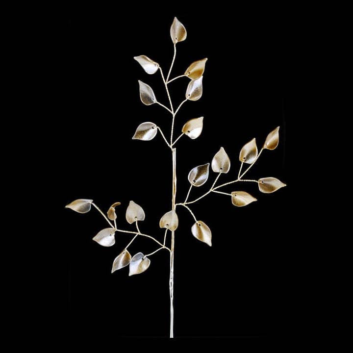 Artificial Gold Wired Twig Pick with Hanging Leaves - 12.5"