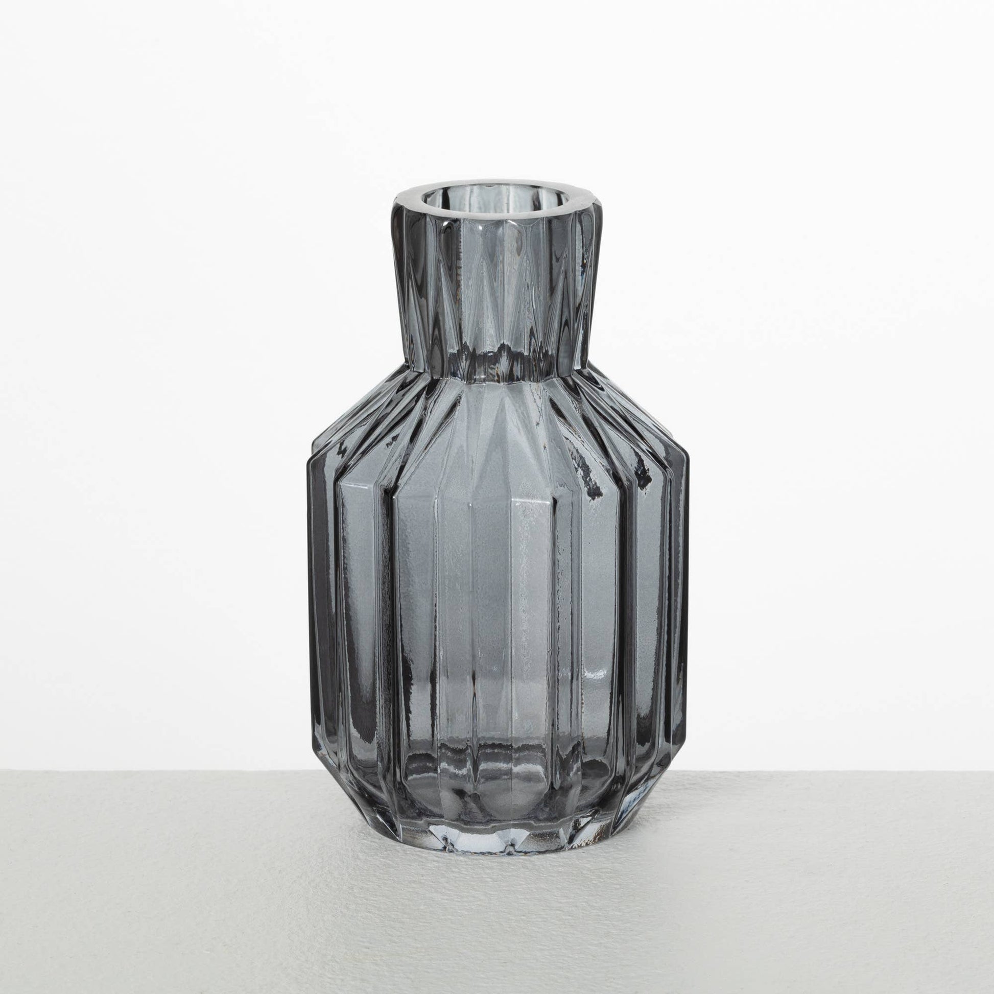 Elevate your home decor with this modern black ribbed glass vase from Sullivans. Its exclusive color and unique textured design make it stand out as a decorative accent piece or sleek vase for your favorite small floral arrangements. The sculpted ribbed glass creates a visually striking yet understated look that complements contemporary spaces. Whether displayed alone or holding a few fresh-cut blooms, this vase brings an artful edge to any room. Use it to add a touch of modern sophistication to your coffee table, bookshelf or mantel. With its stylish form and distinctive black glass, this vase is the perfect way to showcase your eye for design.
