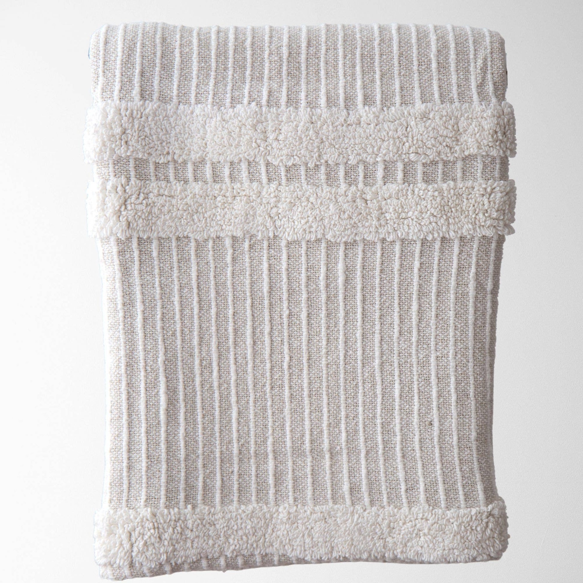 Add a spot of coziness and rich visual appeal to a chair, sofa, or bed with our Blake Textured Striped Throw. This throw is woven by hand using traditional weaving methods passed down through generations of artisans. Tufting stripes are sewn onto this blanket to give it an extra unique "boutique" look. This blanket provides ultra-soft luxurious style while coordinating effortlessly with any home given its neutral color palettes.