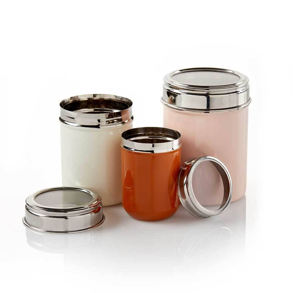 A great addition to a college care package or back-to-school gift, this set of three reusable stainless steel containers in blush, cream, and sienna nests for compact storage and features a clear window in each lid for a quick and easy look at what's inside.