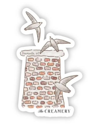 Inspired by the seasonal visitors that call our chimney home, this charming sticker features the graceful silhouette of a chimney swift mid-flight.
