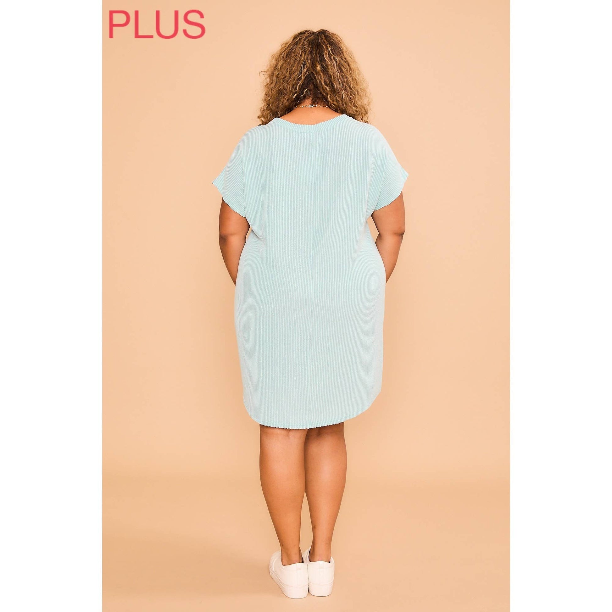 Coral Ribbed Short Sleeve Mini Shirt Dress - Coral ribbed texture fabric