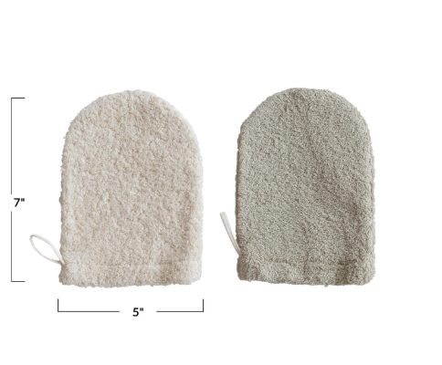 7"L x 5"W Cotton Terry Cloth Shower Mitt w/ Loop