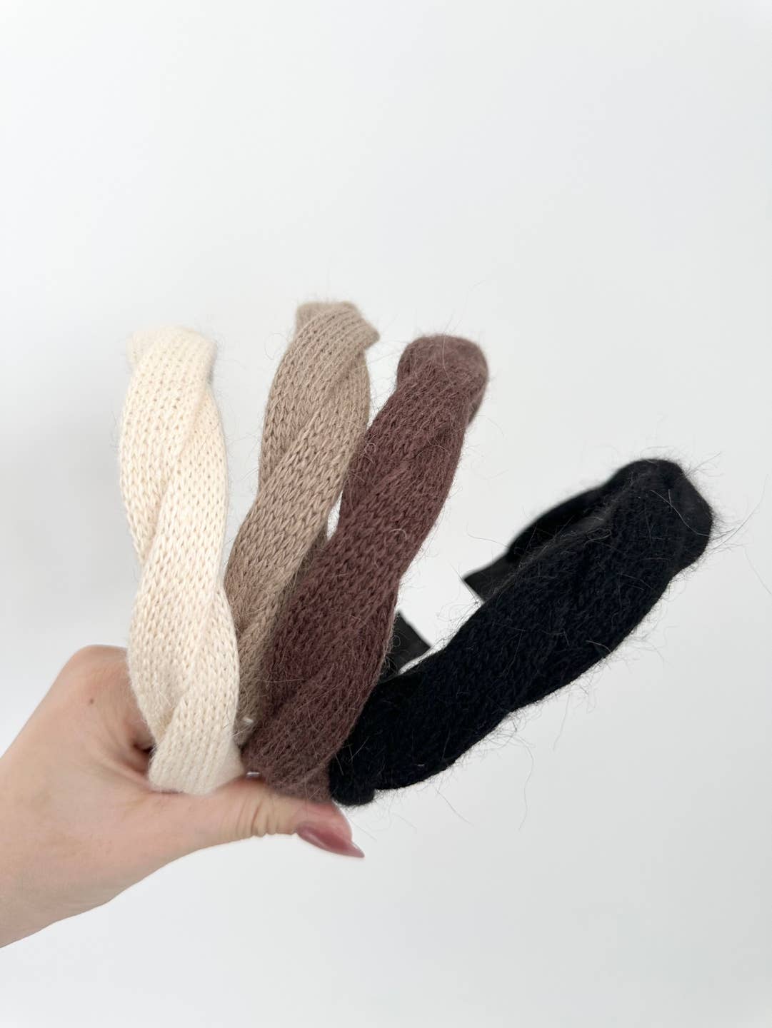 These soft and fluffy knit headbands bring a warm and elegant touch to any outfit. Designed in neutral tones of black, brown, taupe, and cream, they feature a gentle fuzzy texture that adds to their cozy appeal. The headbands are lightweight yet sturdy, ensuring a secure and comfortable fit throughout the day. Perfect for casual wear or as a chic winter accessory.