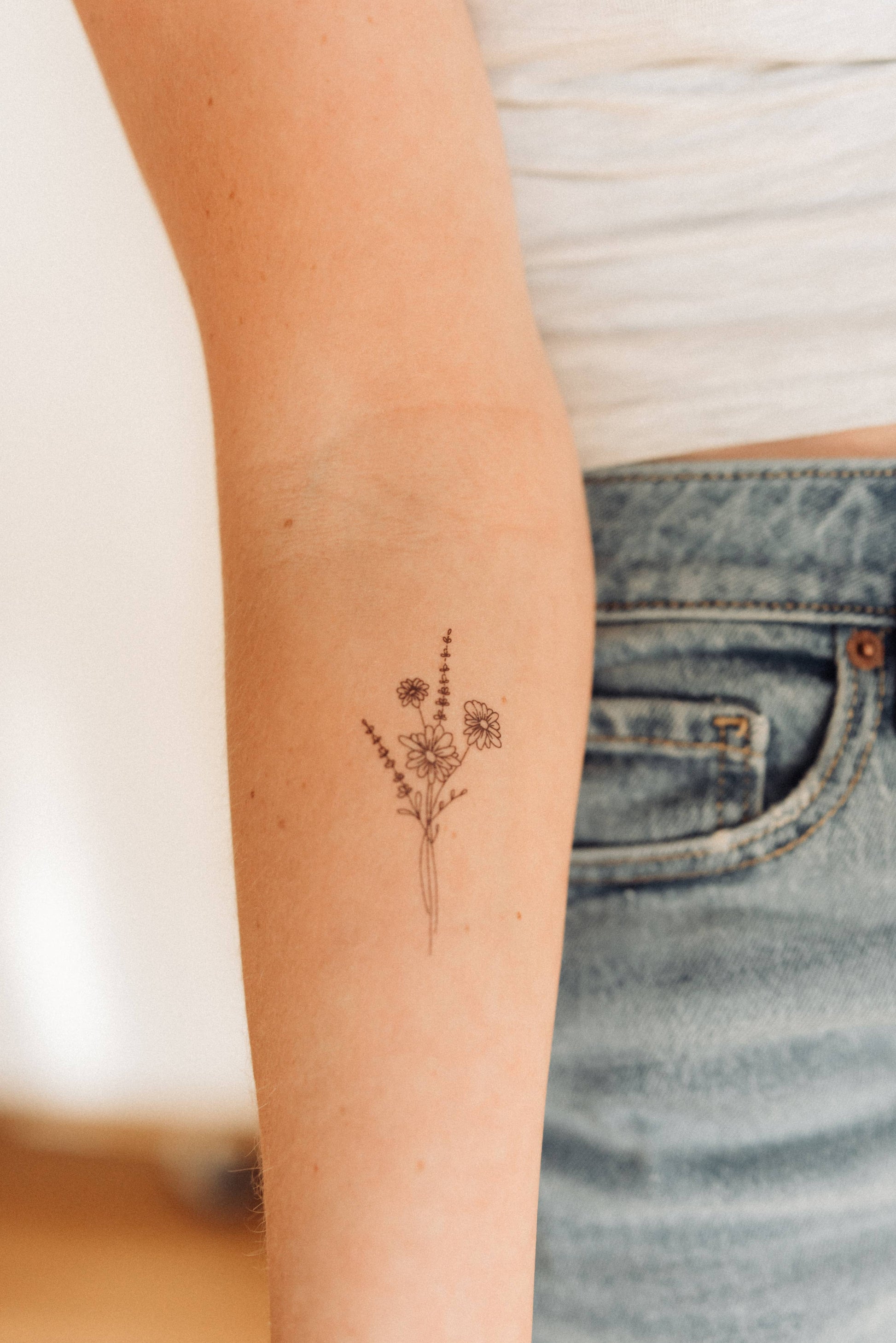 Featuring thoughtfully hand drawn daisies, this temporary tattoo makes a thoughtful small gift to anyone taking on a new venture or a pain-free way to try out a tattoo!
