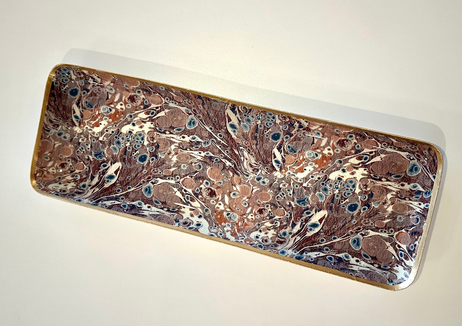 Enameled Metal Tray w/ Pattern & Gold Rim