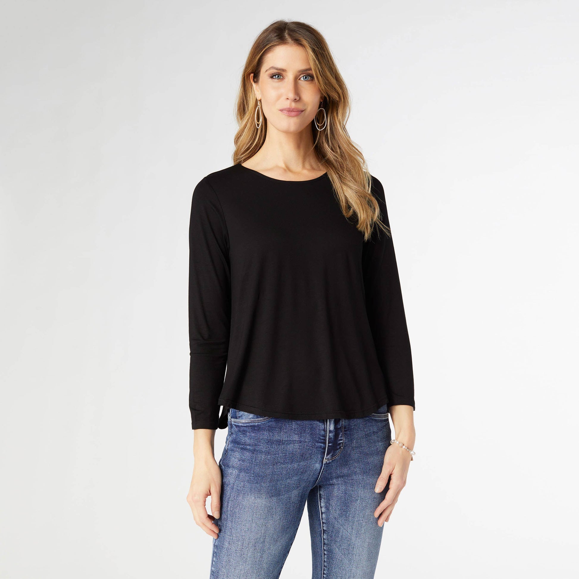 This is a must-have essential for every closet. A great lightweight base layer that features super soft fabric, gentle stretch, scooped hemline and pleat back detail.
