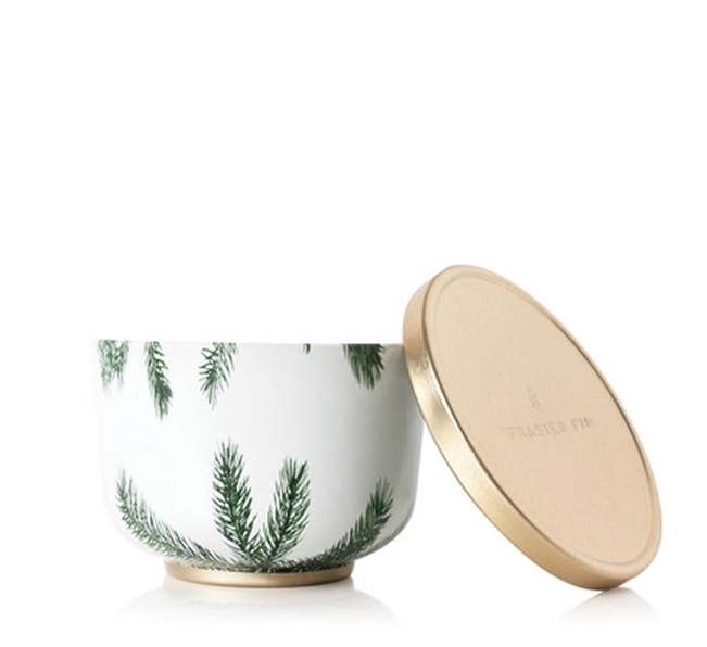 Mountain fresh and glowing, this perfectly sized poured candle tin with gilded gold lid fills your surroundings with the iconic fragrance of the season.