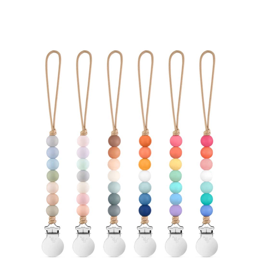 - Nylon cord, seven medium food grade silicone beads, and a lead free stainless steel clip.