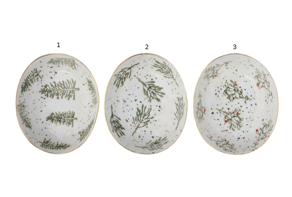 5"L x 4-1/4"W Oval Debossed Stoneware Dish w/ Greenery & Gold Electroplating