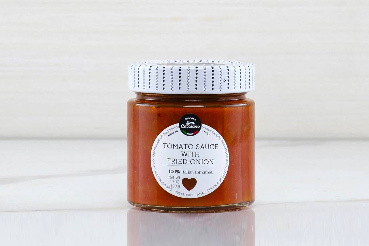 - Ingredients: Tomato pulp, fried onions, sugar, olive oil, salt, linseed flour, oregano, chili pepper. Product of Italy