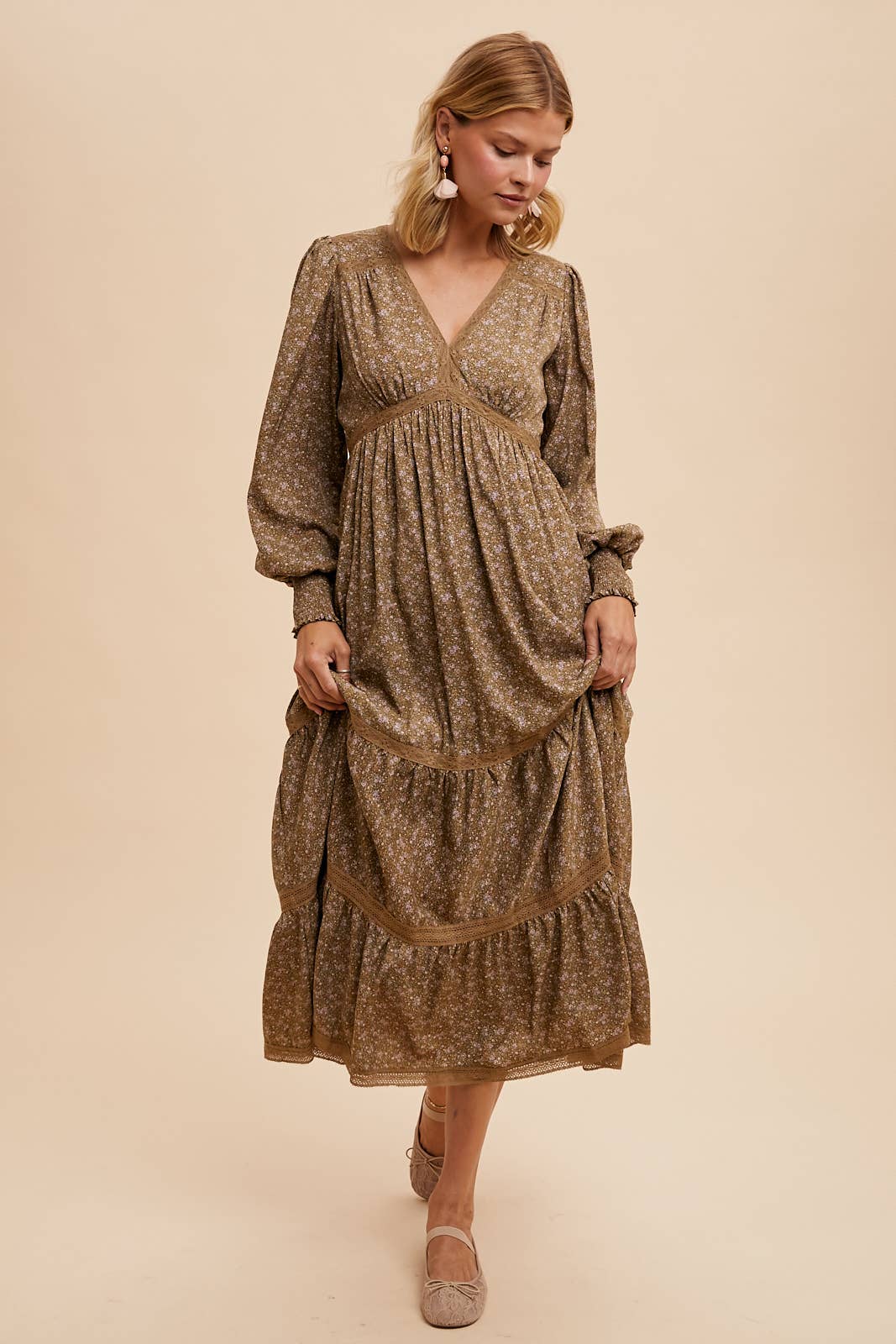 LACE TRIM FLORAL MAXI DRESS