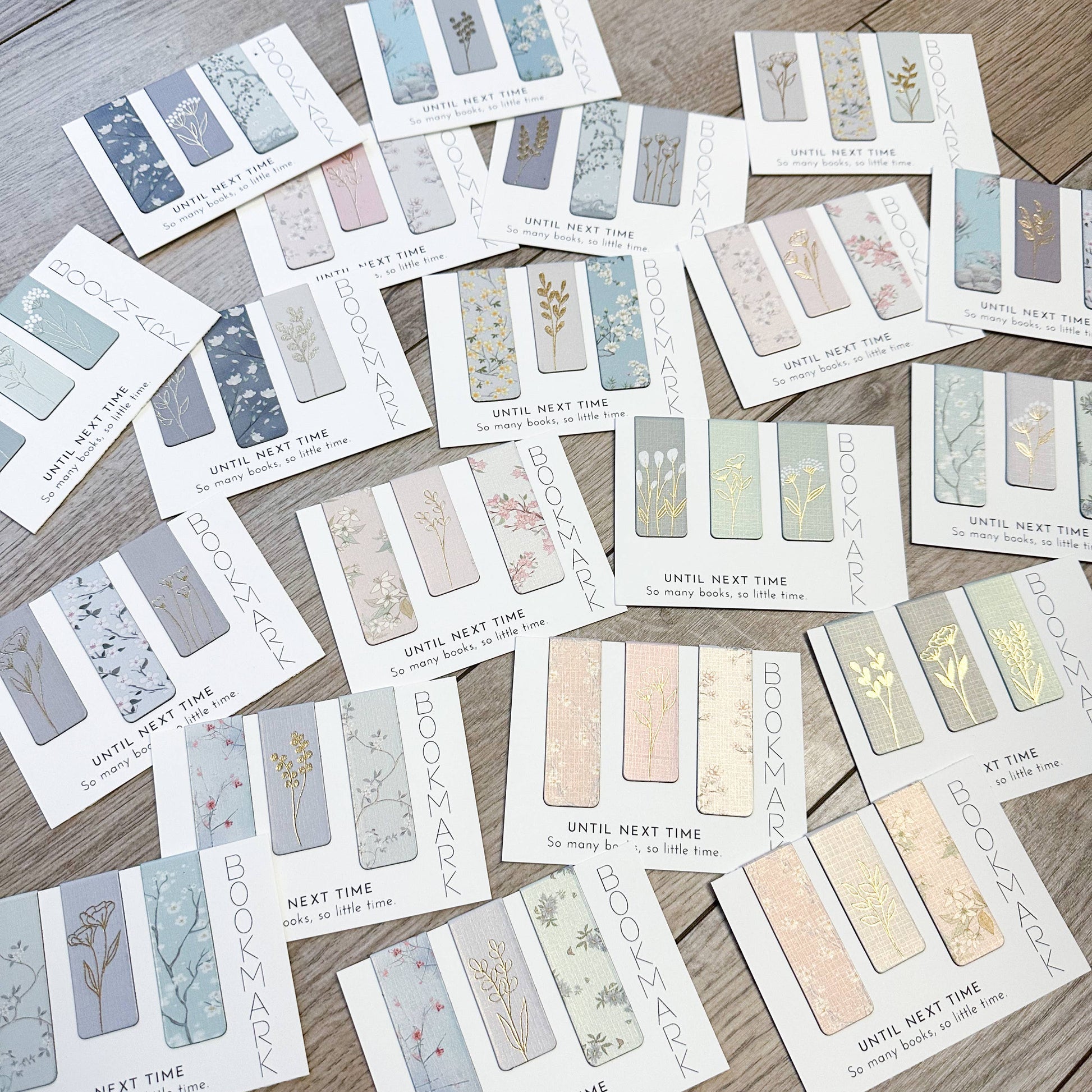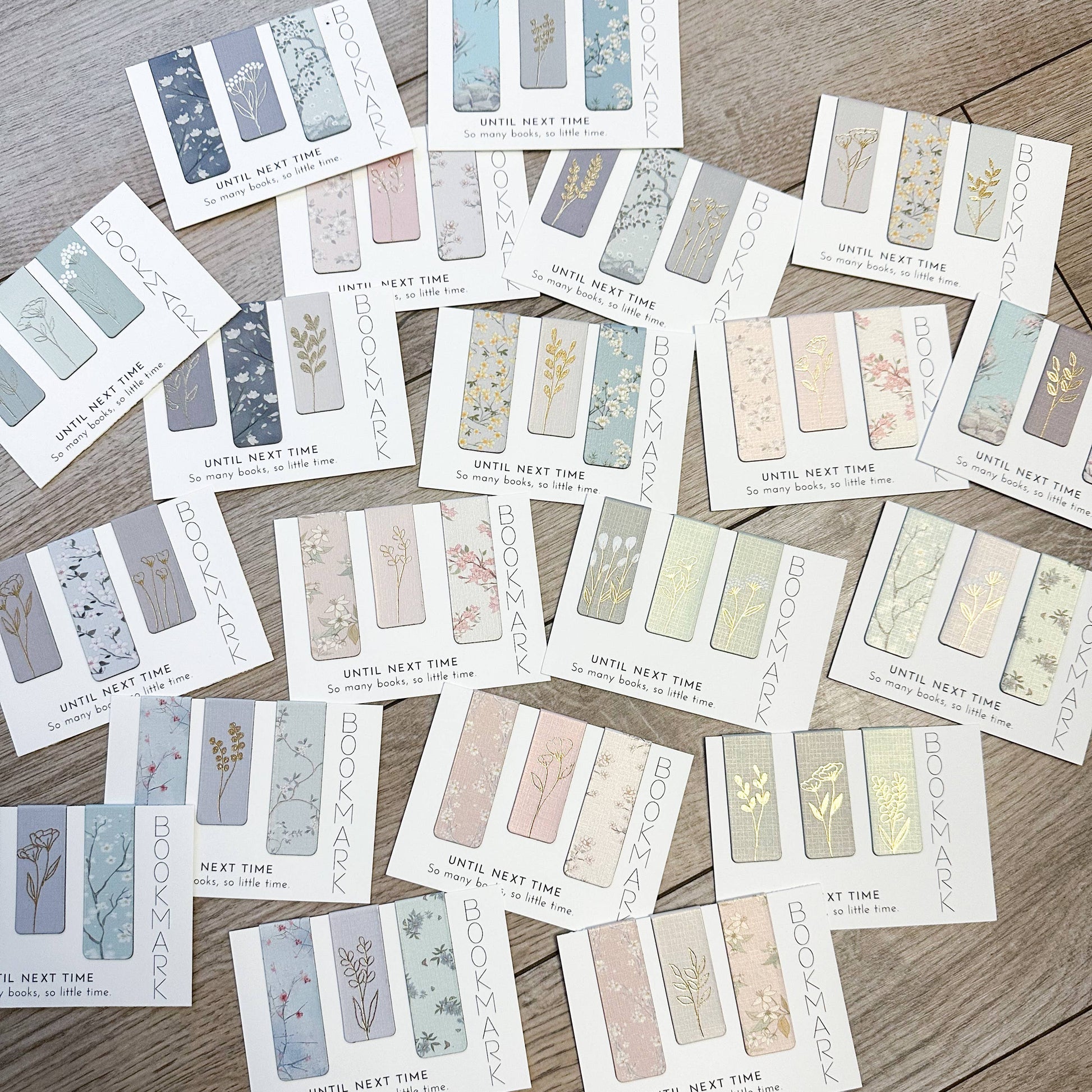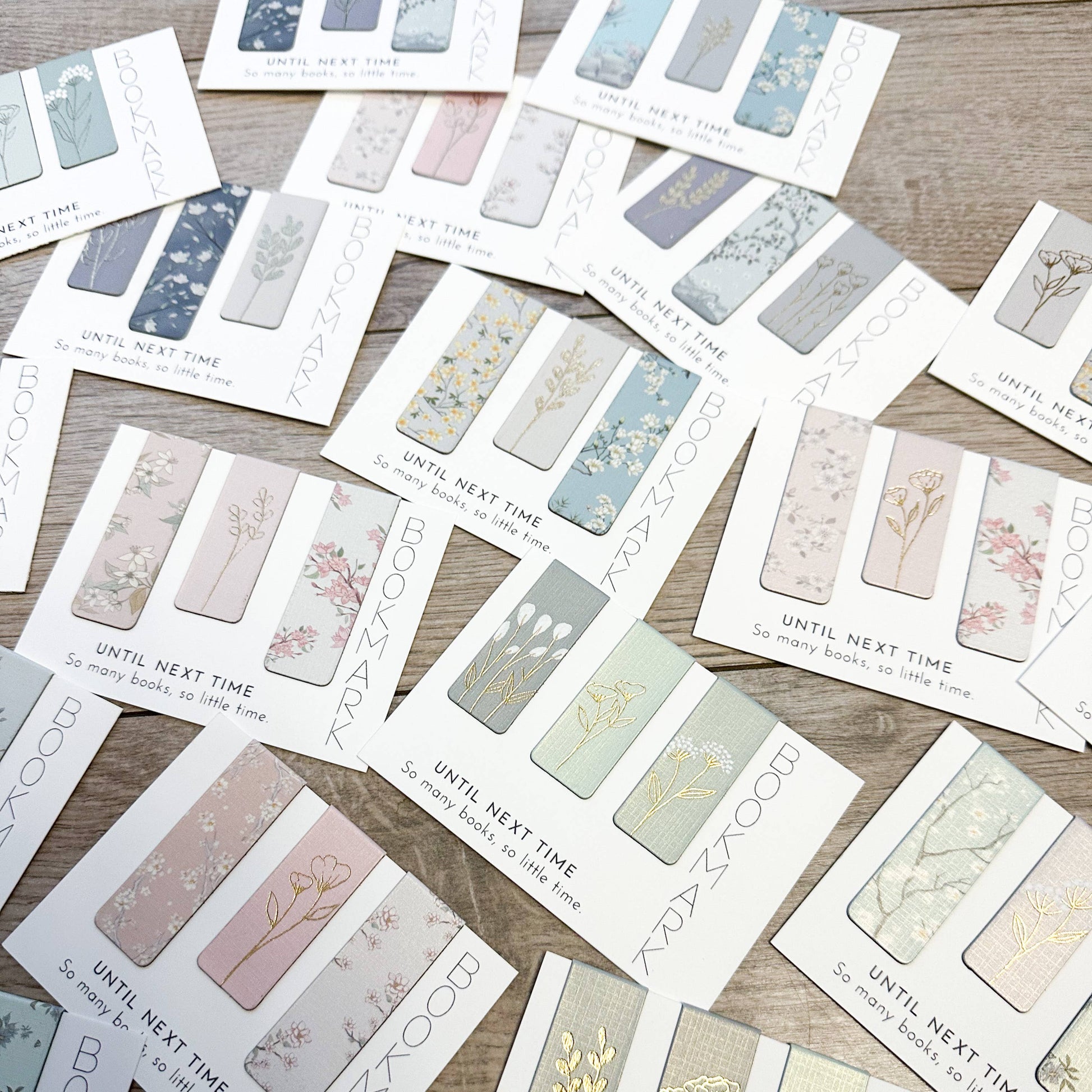 Bookmarks with randomly selected floral designs in various colors and styles. Some bookmarks are foiled by hand, giving you a one of a kind bookmark. Bookmarks are magnetic, and close over your book page to hold your place without fear of it falling out.