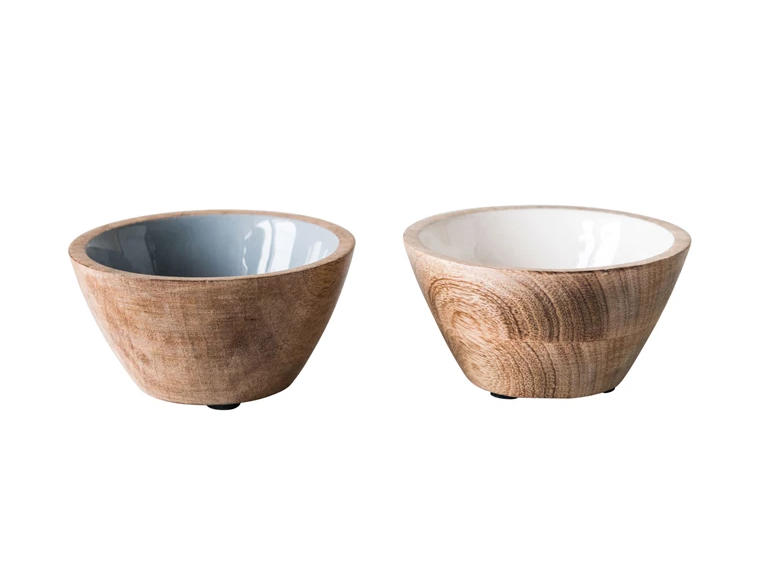 - 5" Round x 2-1/2"H Enameled Mango Wood Bowl, 2 Colors