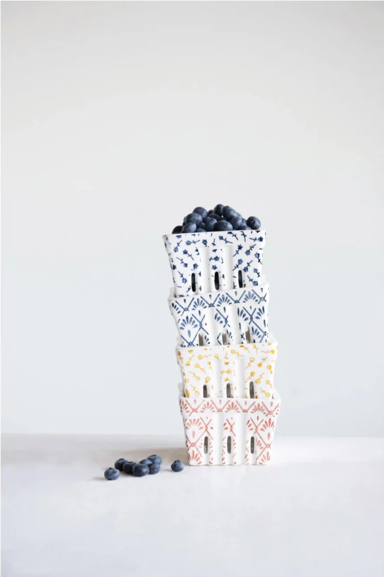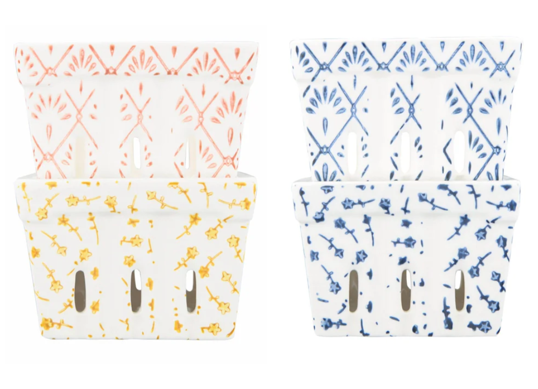 Display a variety of fruits in these colorful stoneware berry baskets. Serve up strawberries, blueberries, grapes and raspberries for a healthy snack or addition to any meal. They will be a hit with family and friends alike.