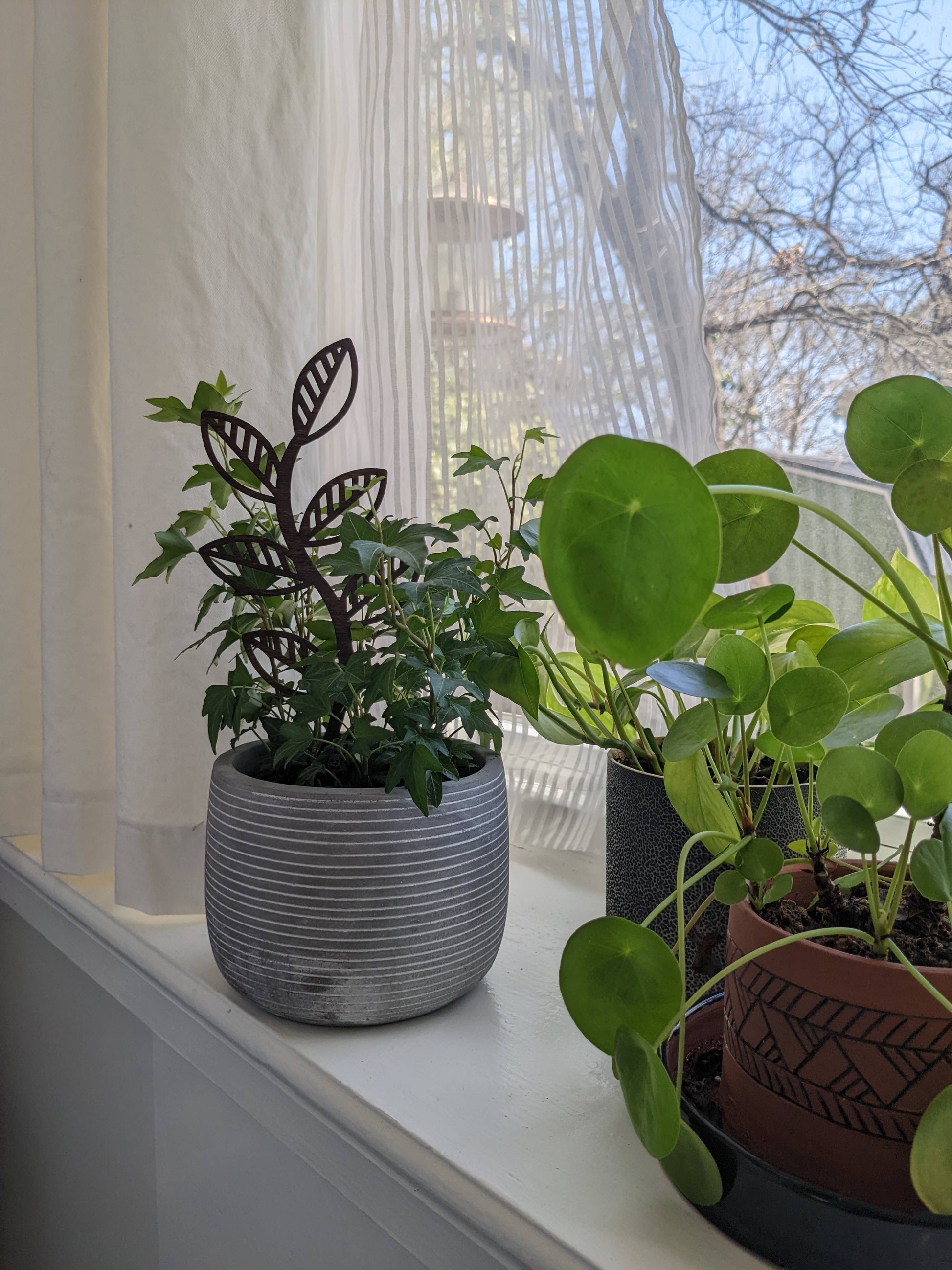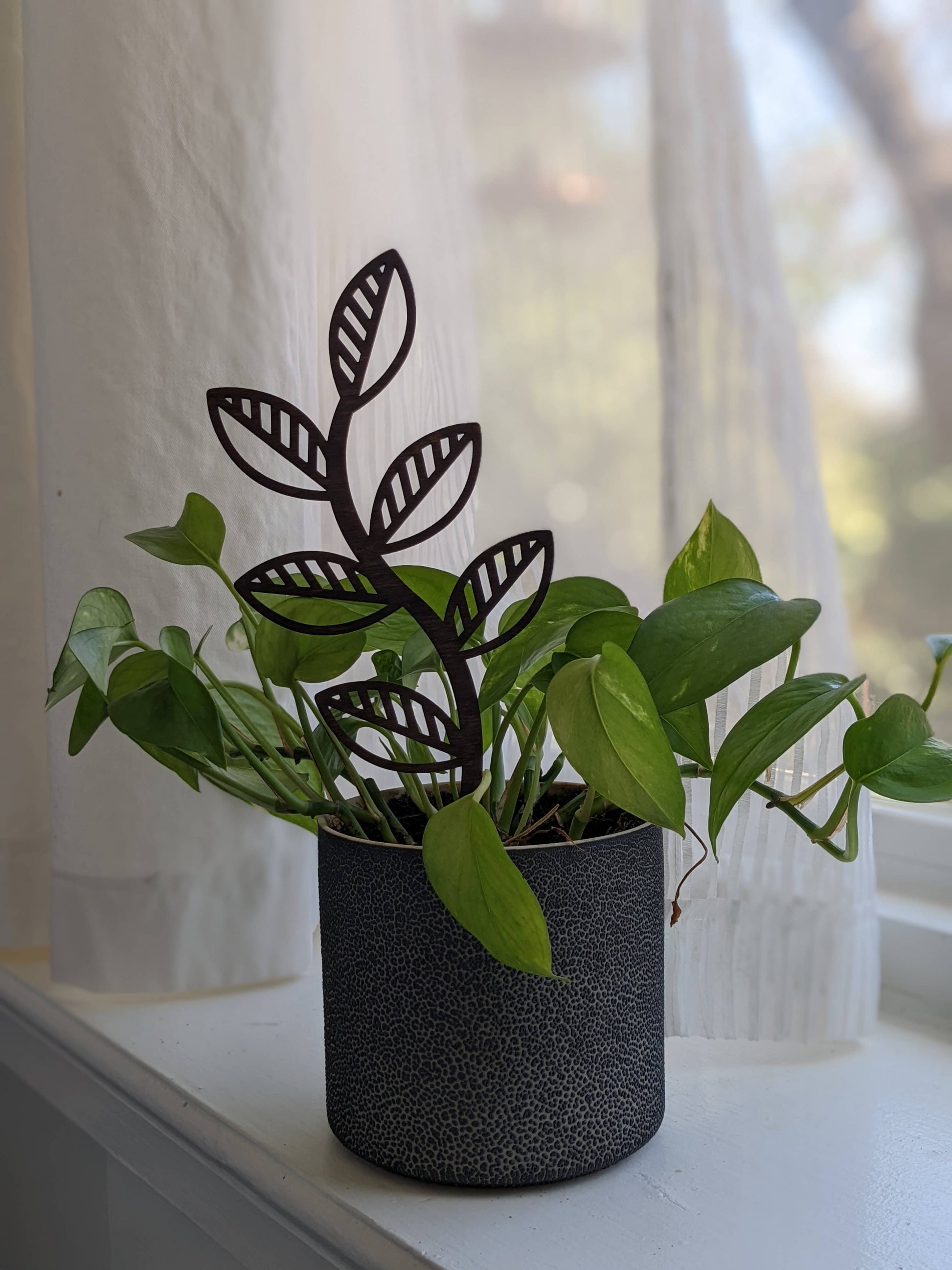 Designed to offer support your trailing houseplants, or offer extra design interest to any potted houseplant! These plant trellis' are designed and laser cut by our small team of local creatives. Each trellis is made from 1/8" birch wood that has been stained to help protect the wood.