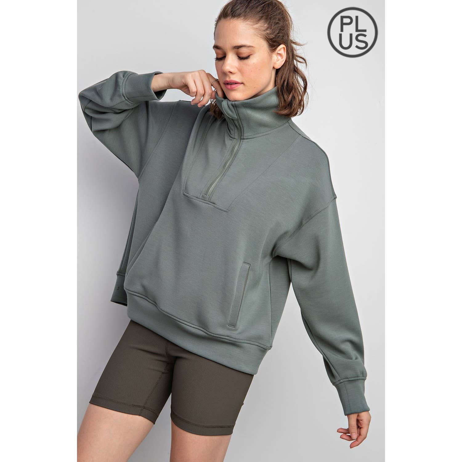 - Butter Smooth and Cooling Fabric. Quarter Zip, Mock Neck, Kangaroo Pocket , Long Sleeve, Pullover
