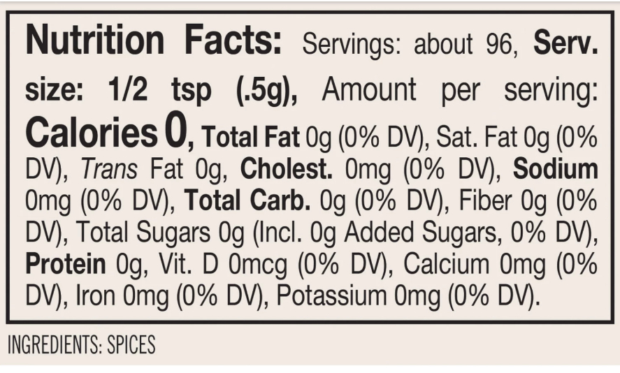 Our pumpkin pie spice is full of warm fall flavors, packed with allspice, ginger, vanilla, and cinnamon. This is the perfect spice to add to any seasonal dish or a simple beverage for a sweet treat.