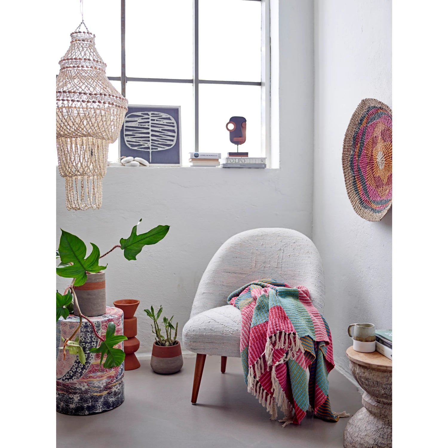 Add warmth and personality to the space with this woven reclaimed cotton blend throw with a cozy and colorful design. This throw is made of reclaimed cotton blend, an eco-friendly fabric that provides comfort and durability. The throw features a fun multi-colored stripe pattern that adds a touch of elegance and simplicity, while the fringe trim adds a touch of charm and personality to the throw. The throw is suitable for any space that needs texture and character, such as the living room, bedroom, office, or other area. It can also be an excellent gift for anyone who loves eclectic, bohemian, or global design. This throw is easy to care for. Simply machine wash cold, gentle cycle. Tumble dry low. Do not bleach, iron, or dry clean. Add this woven reclaimed cotton blend throw with stripes and fringe to the home and enjoy its beauty and functionality.