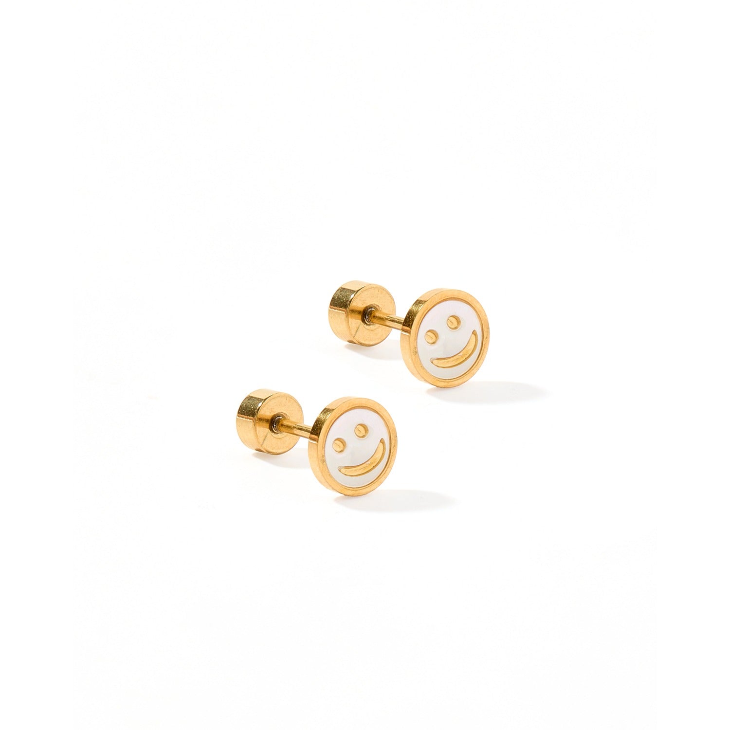 - Style Description: White circle stud with a smily face. 6mm in size.