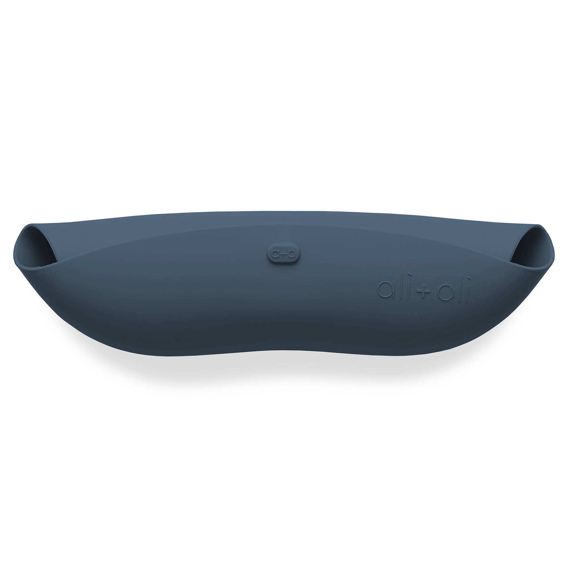 Our brand new roll-up & stay closed bib has the same features as our original bib, but now we added a little button so it can be closed. This is great since it makes it easy to store at home and on the go in your diaper bag. The bucket of the bib now serves as storage for utensils.