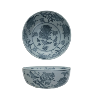 Stoneware Bowl w/ Birds & Botanicals