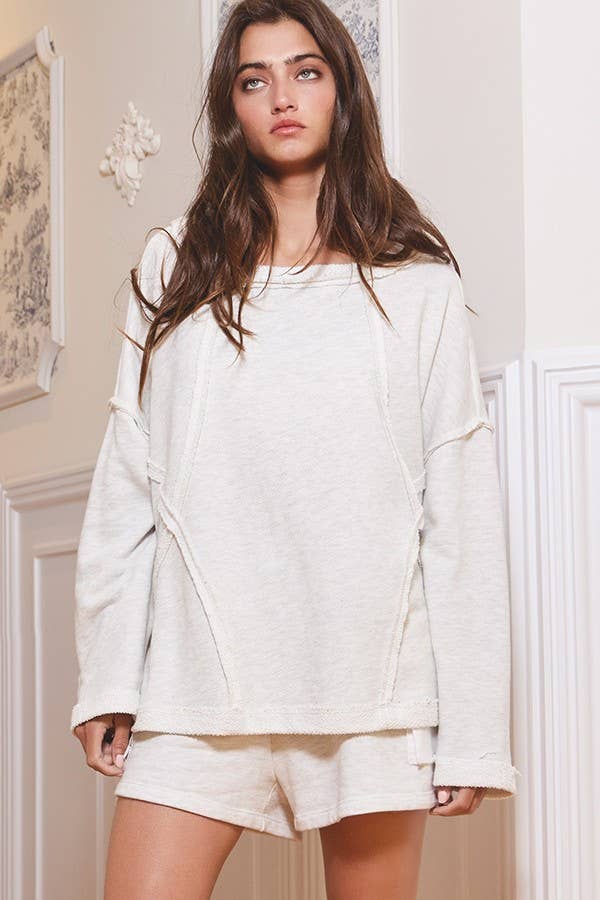 Oversized Solid Raw Edge Detail Long Sleeves Top