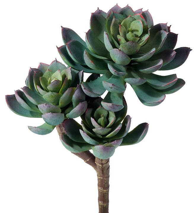Realistic looking and feeling succulent is ideal for a cute pot or container. The soft touch plastic has a dusted finish making this pick look very natural.