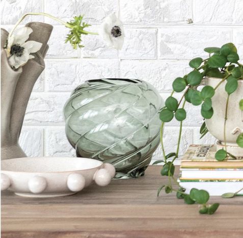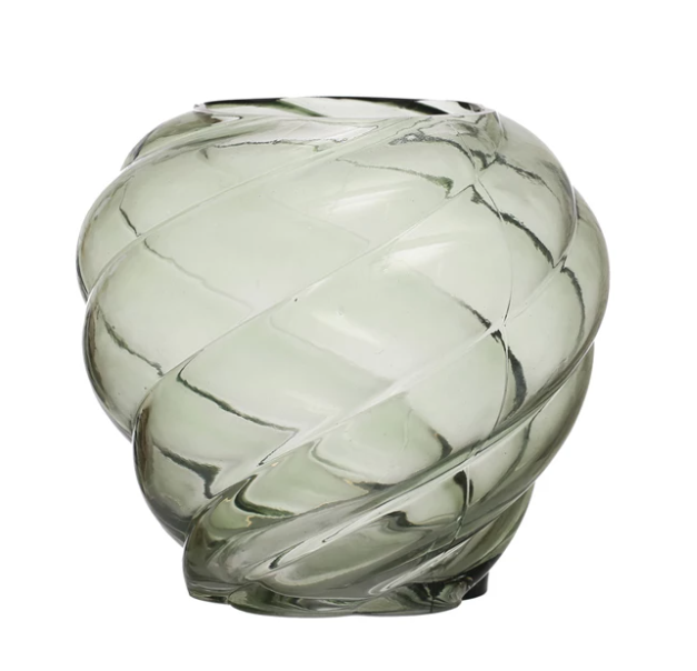 7-3/4" Round x 7-1/4"H Twisted Glass Vase, Green