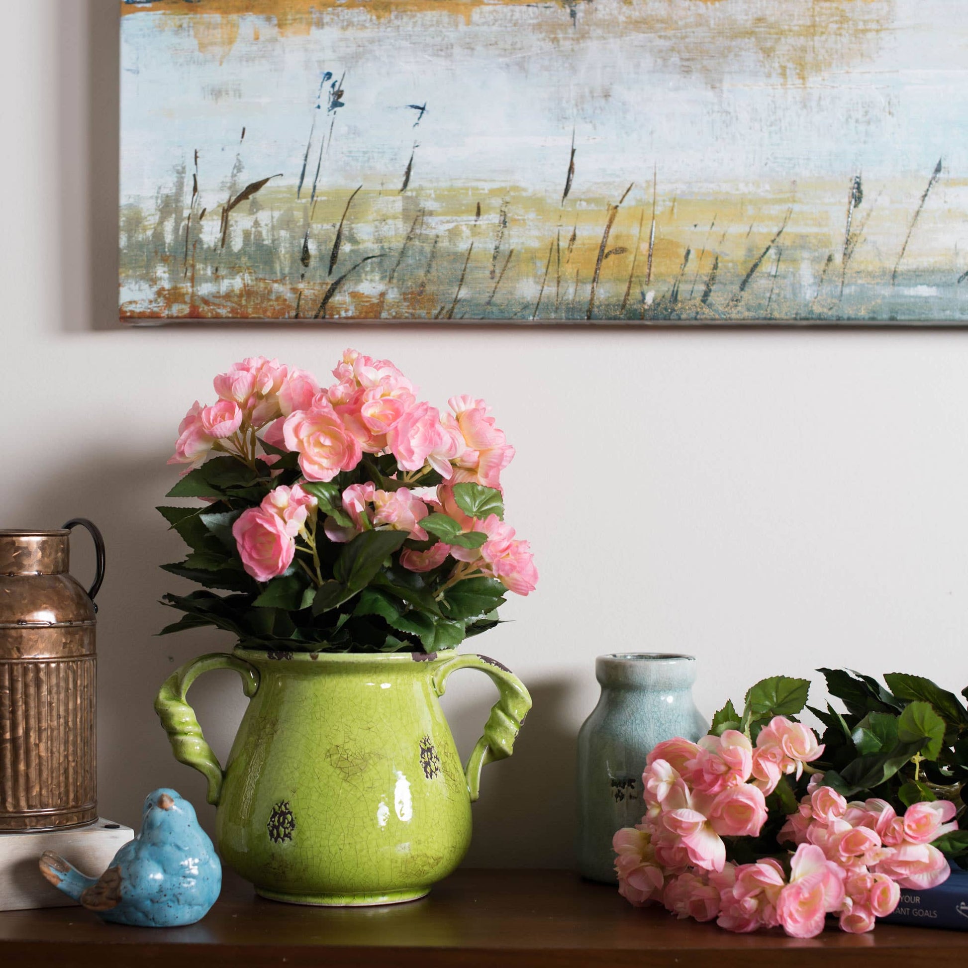 Vickerman 15.25" Artificial Lt Pink Polyester Begonia Bush with 90 Leaves and 102 Flowers. This Bush is made of maintenance free polyester and will retain it's vibrant color for years to come.