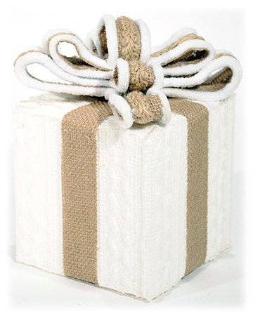 White Knit Gift Box with Burlap Bow - 2 Sizes