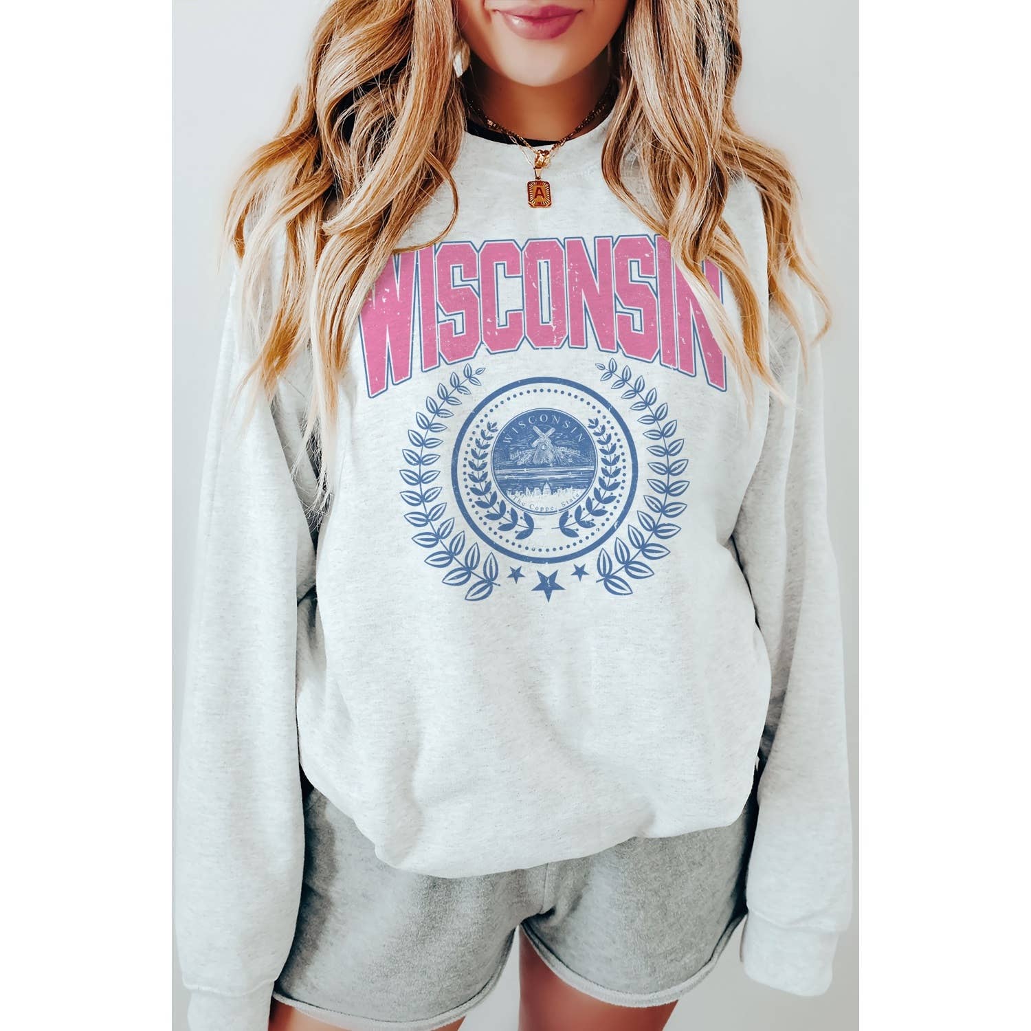 WISCONSIN STATE WREATH Oversized Graphic Sweatshirt